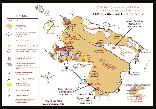 Mapa detallado con ubicación de posibles deslojos